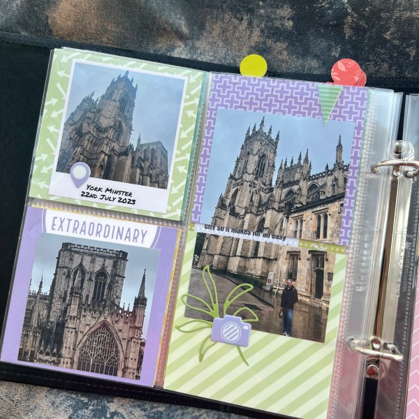 Although we go to York regularly I didn’t have many photos ready printed to add into the album at this stage – so instead I went for two collage photos and then the pics of York Minster for my pages. The good thing about the album though is that I can always add in more pages as and when I get photos printed (or we visit again! 🤣)