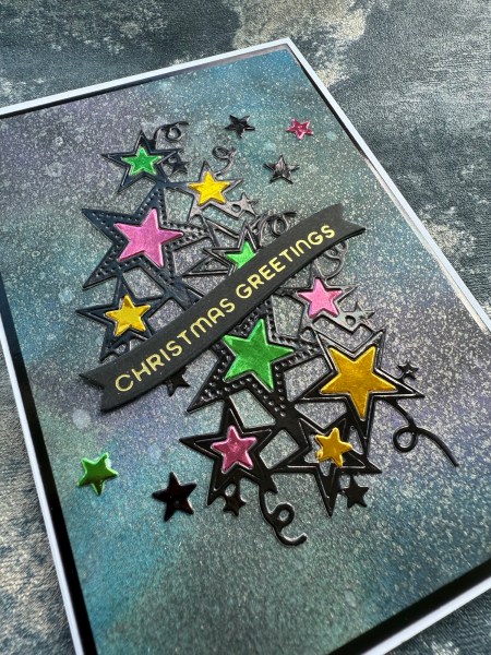 The theme today for Christmas in July is Follow that star and I decided I wanted to use the new die I bought a few weeks ago from The Greetery. I then ended up making a lovely shimmery night sky background to place the die cuts on and adding the other colours of foiled cardstock too!