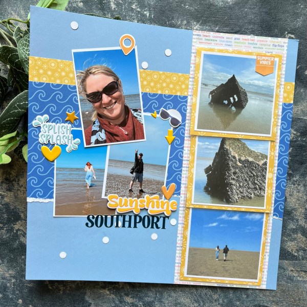 Hello! Today I’ve been at a crop so lots of scrapbooking has been done but I’ve not got around to taking pictures just yet so you will have wait for those another time instead for today’s Scrappin Saturday post I wanted to use the Flip Its from Kingston Crafts on a traditional scrapbook page so then I could include more photos on the page as each of the three flip its are double sided! And back in June this one became famous … yes it was on tv! 🤣