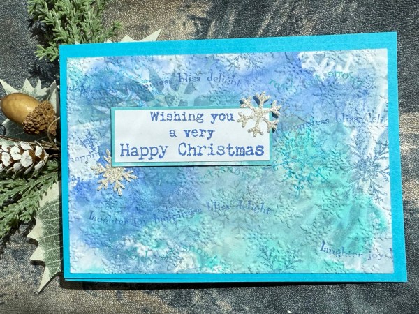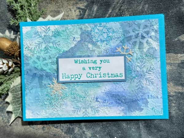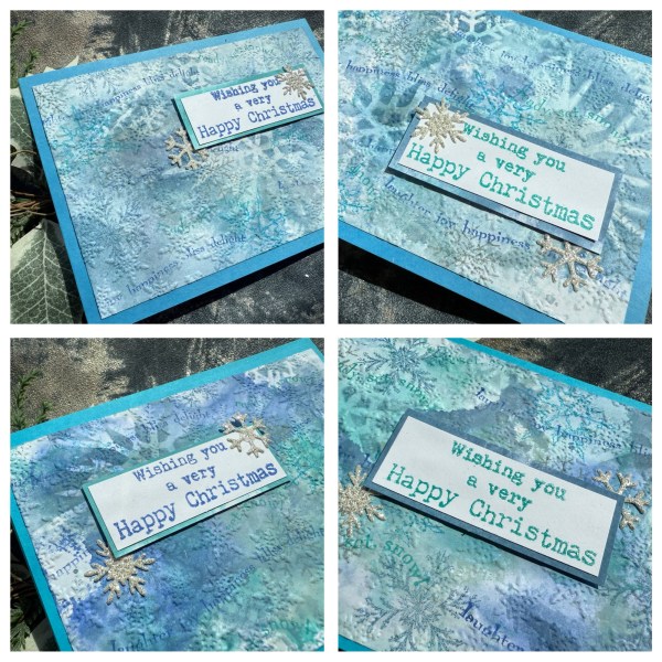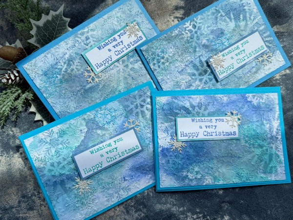 Today I went very inky and had lots of fun with distress oxides to create these four cards for the theme of sparkling snowflakes.