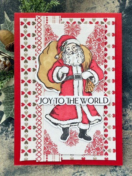 I saved it until the final day of Christmas in July to focus on Santa Claus … and I then challenged myself to use the fabric papers from Papermania that I have had for years in my stash!