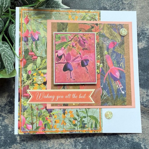 I chose to ink and splatter the background panel which made it special – even though I did have to do it twice as stamped the sentiment too far left originally as it got covered by the paper pieces! Doh!