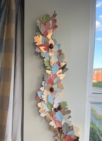 I haven’t yet decided on where it will be displayed for Autumn but for now it is hung on a hook next to my work desk and in the window and it is splendid!