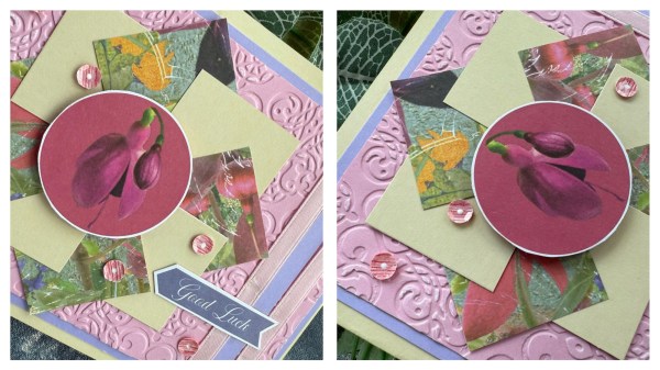 Inside I added another panel of embossed card and then some other cut apart elements from the magazine kit … I struggle a little with these sorts of cut apart elements so it was good to get so many used on one card!