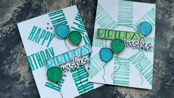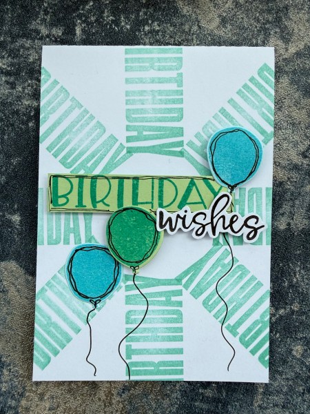 I stamped using the stamp wheel the backgrounds with the word stamps and then added the balloons and sentiments with doodles as focal points.