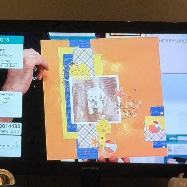 Today I am off to a crop so sure I will have a few pages to share by the end of the day but for today’s Scrappin Saturday post it is one of my design team projects for Kingston Crafts – this time using the Summer Fun kit to make another page of the lovely Barney who is one of my friends dogs and famous from appearing on tv on the hobbymaker show!