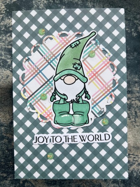 I used the same pattern card for the die cutting circle for this one too and this time kept to a monochrome for the gnome in the greens and of course the same with the gems.