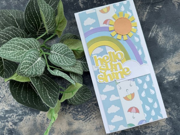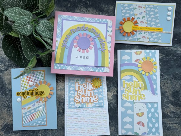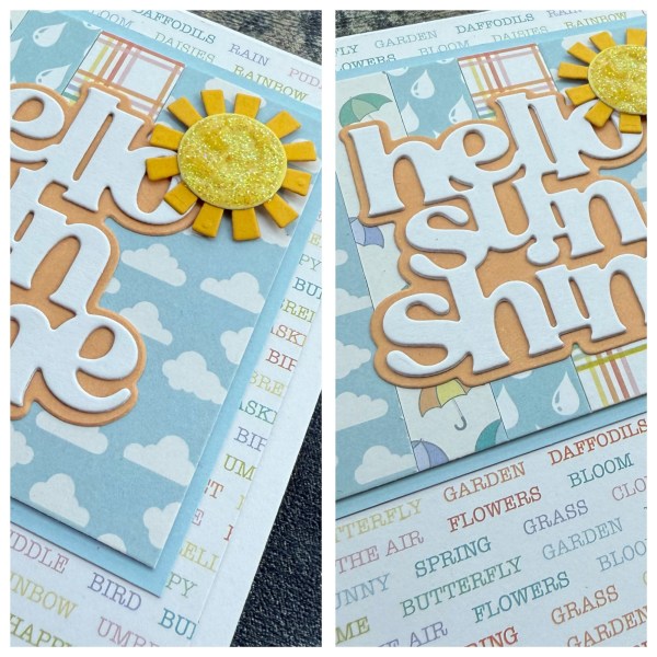 This, along with the panels of the pastel cardstock from Kingston Crafts created a lovely base for the sun die cut.