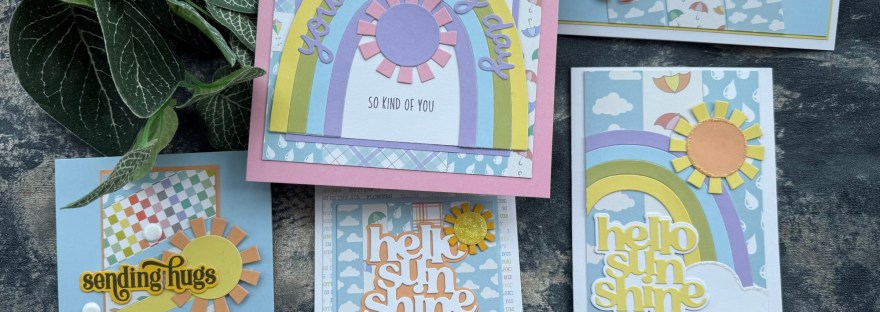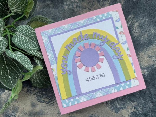 It was fun to do these rainbows in pastel colours rather than brights – and very cute to team with the spring slimline papers too I think! I still have a few ready made up rainbows too so they are left in the pouch ready for next time I fancy going rainbow! 🌈