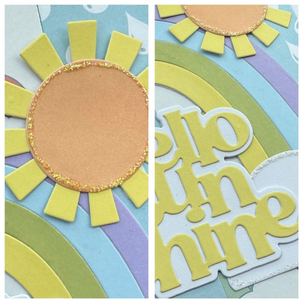 I added the smaller sun as the die cut element and added glitter glue to the central part so it is super sparkly!