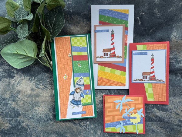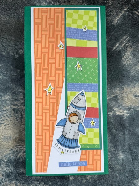 You will see two I went with the lighthouse digital image I had coloured on another occasion but never got around to using – and then that cute rocket image too!
