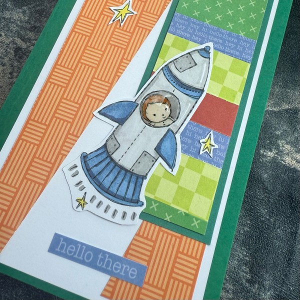 I added glossy accents to the window for the rocket and then fussy cut it out along with those stars. So cute!