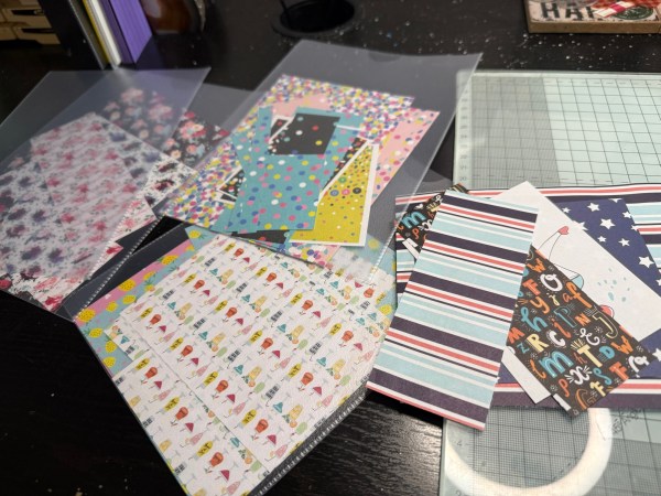 Some papers I will admit went either to the bin or the concertina file I keep patterned paper scraps in. But the rest were used for a mish mash of projects!