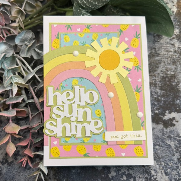 I used rainbows I made a while ago and then created the back panels from the pineapple papers.
