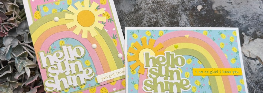 I used rainbows I made a while ago and then created the back panels from the pineapple papers.