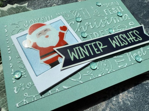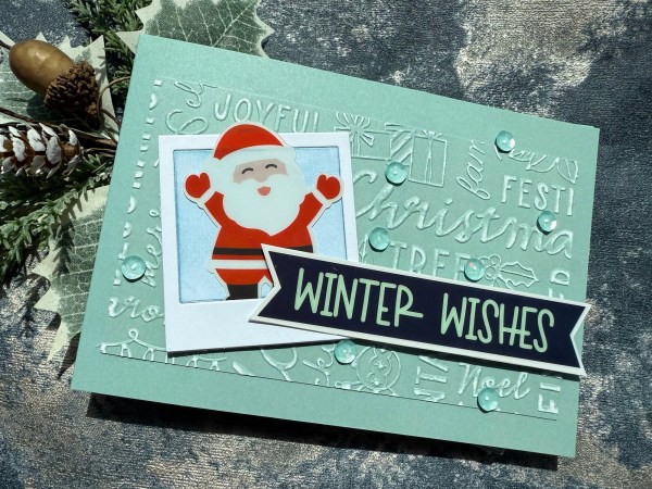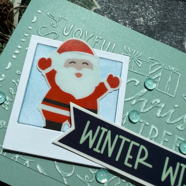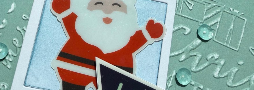 I’ve made this card when I saw the cute Santa in the acetate and vellum kit. I just thought he looked so cute he could be posing for a photo – so I used a sizzix die cuts to create a Polaroid.