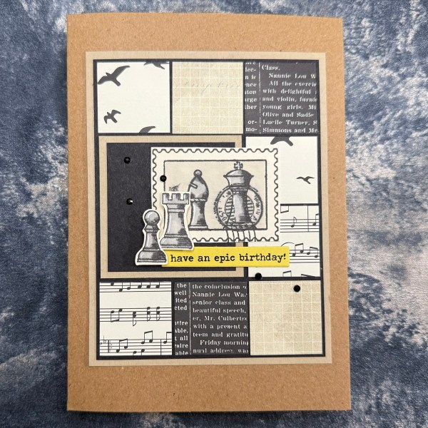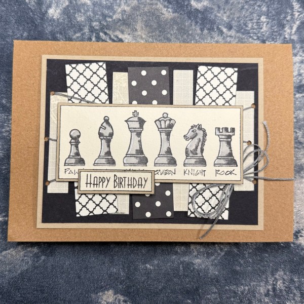 For this one I chose to use chess based images for my focal points and mixed them up with a few fussy cut out and then the postage stamp image too!