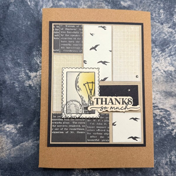 This final card for crafting session one I went to town on … embossing and die cutting the black panel made the whole thing come to life!
