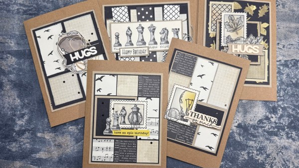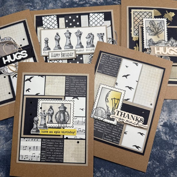 Love these five cards – all of the toppers were mounted onto the Kraft 5×7 card blanks which gave a nice frame to the panels.