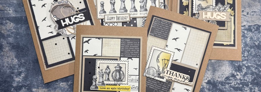 For this one I chose to use chess based images for my focal points and mixed them up with a few fussy cut out and then the postage stamp image too!