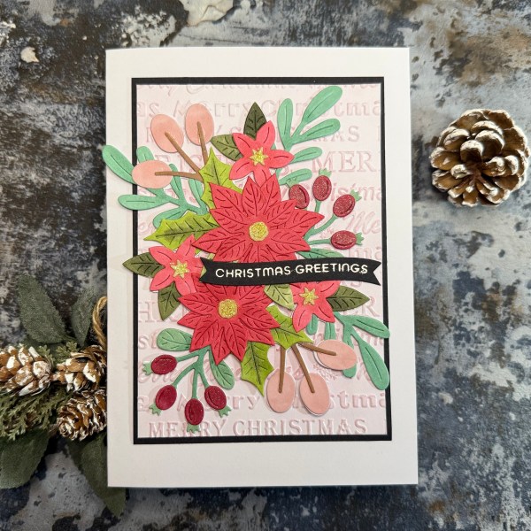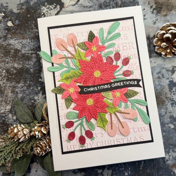 Here we go – first Christmas card of 2026 and I started with my favourite purchase from 2025 – the Alex Syberia Christmas bouquet dies!