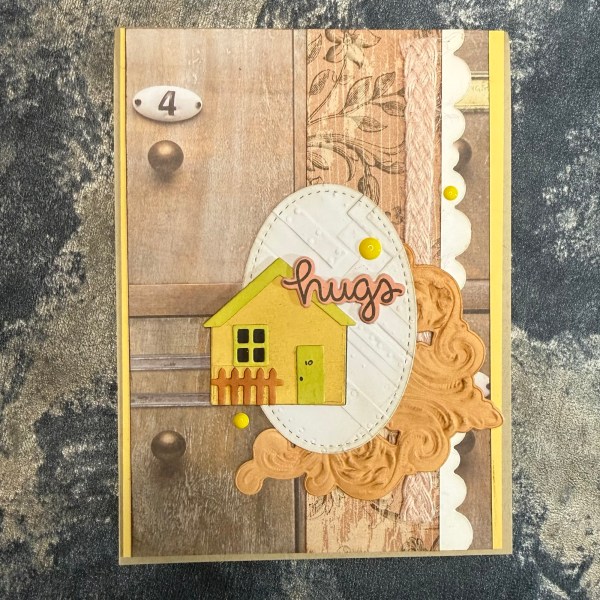 I also added in a bumpy border die cut and then the flourish type embossed die cut I bought last year and this is my first use of … looks like a sconce type of thing so again I thought quite house related.