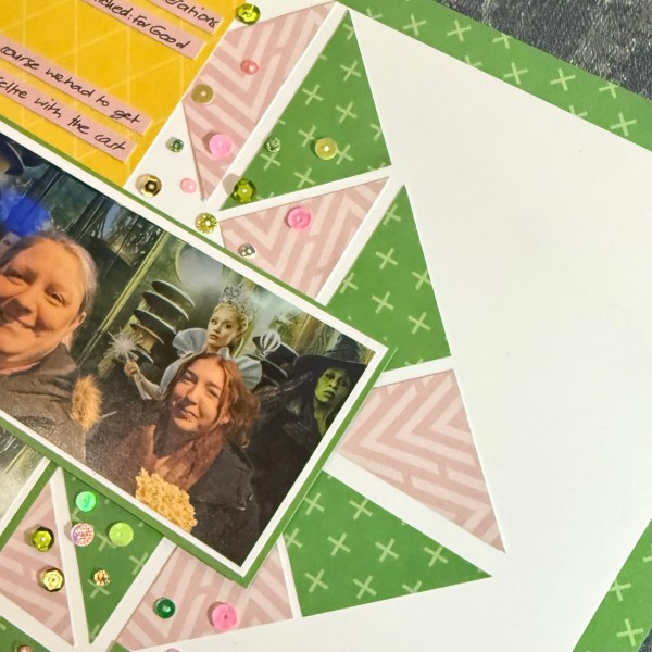 I will say though that it took forever to make! Far longer than I normally take when scrapping at home – I wouldn’t mind the thing that looks the fiddliest bit (the triangles) was easy and quick – really don’t know why the rest of it took so long!