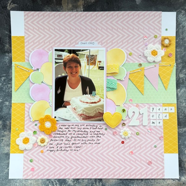The photo I scrapped (if it’s not obvious from the title) is of me on my 21st birthday – which was only a few years ago! 🤣