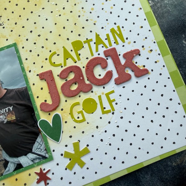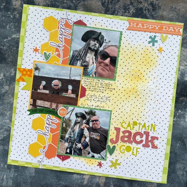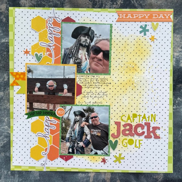 Great to scrap these pirate golf photos from our holidays in Devon – great to turn the grey sky photos into a sunny page too!