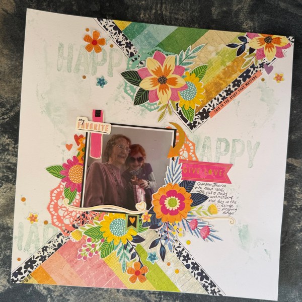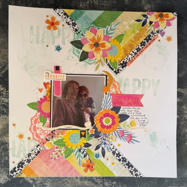 Really love this colourful page – I think I probably should have done slightly less of the mixed media (I went a bit OTT) but still a fun, colourful page that I think fits perfectly the photo!