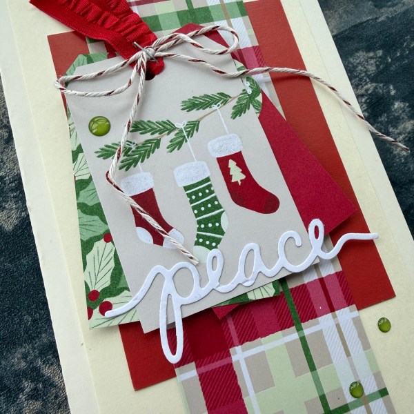 I did add wink of Stella to the top of the stockings on the top tag piece and raised those tags up on adhesive foam for dimension.
