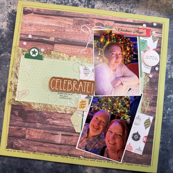 This page I actually made a few months ago as part of the Scrapbooking Challenges – UK team winter event – but never got around to sharing on my blog because it was busy with other projects at the time. It is also one of my 100 patterned paper projects and I cut into three papers to make this! I popped the scraps back in the box for future use!