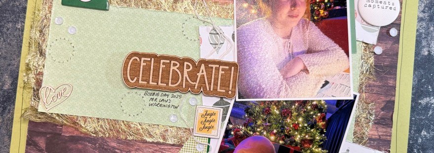 This page I actually made a few months ago as part of the Scrapbooking Challenges – UK team winter event – but never got around to sharing on my blog because it was busy with other projects at the time. It is also one of my 100 patterned paper projects and I cut into three papers to make this! I popped the scraps back in the box for future use!