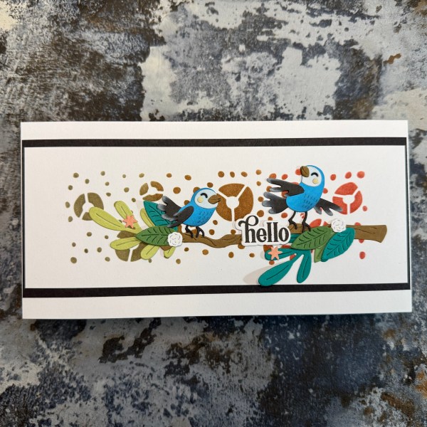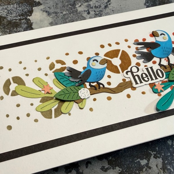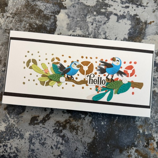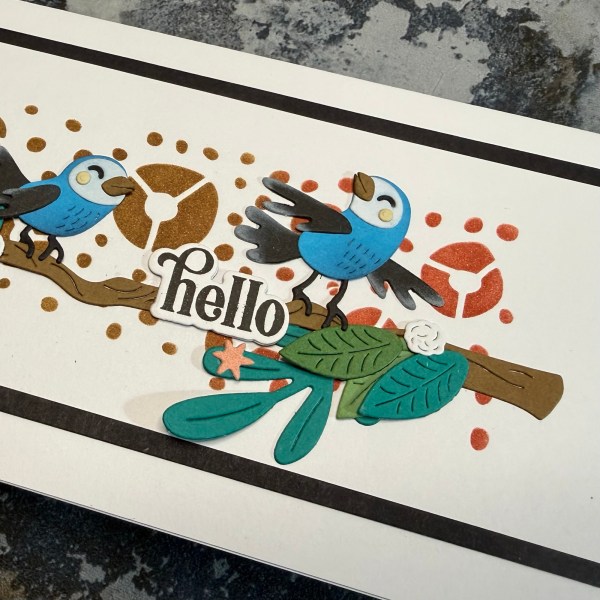 This time I did a simple but beautiful blended background through a stencil and then went to town with die cuts – some of which I added ink with my blending brushes to them to give a little dimension to my birds!