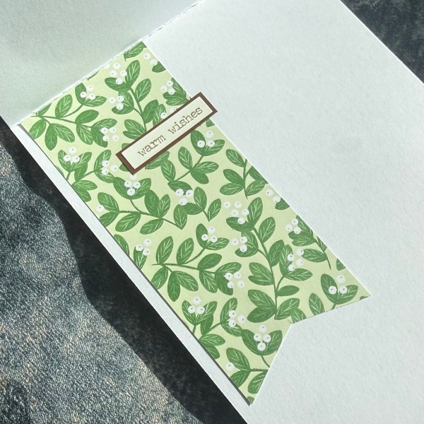 Inside I kept it quite simple … some more paper from the kit cut into a banner and then another sticker mounted on cardstock as a sentiment.