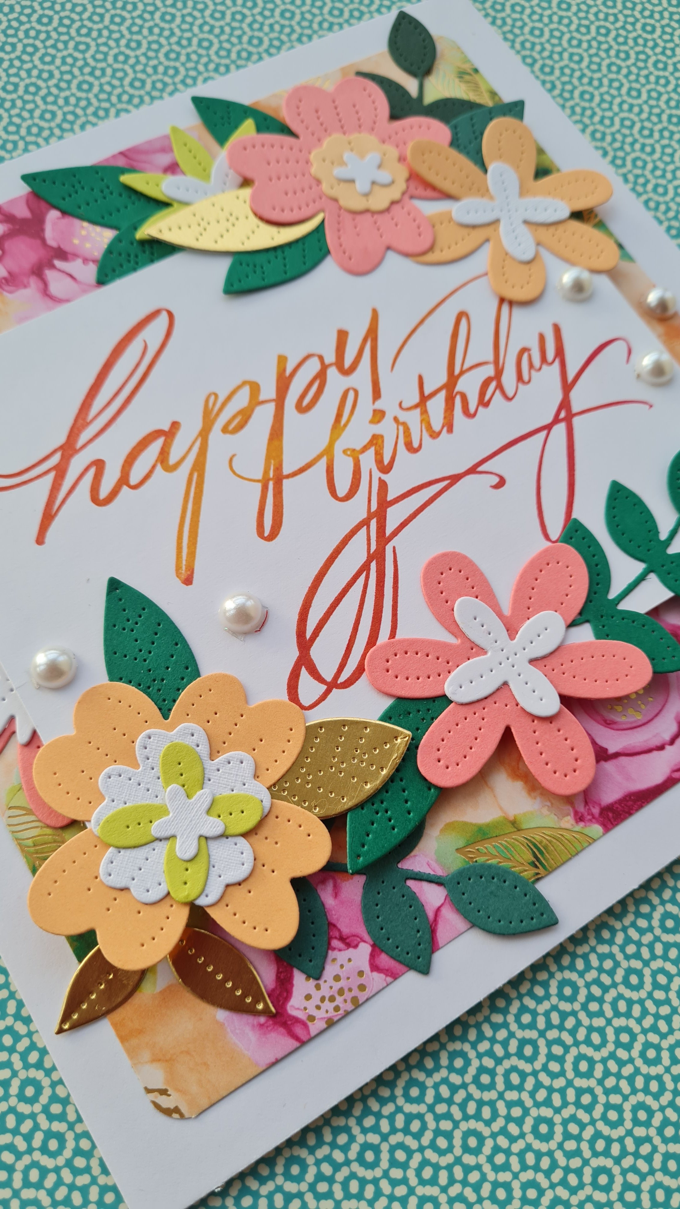 I decided a circle shaped card would work OK with the image and my largest circle die was just about the right dimensions to cut out the card blank.