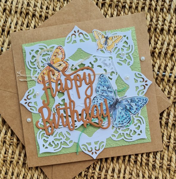 Back to the actual card… Once I had trimmed it down a little I decided to make a mini shaker and to add a black and white butterfly as the main feature … to be honest I just wanted to enjoy the background! Lol!