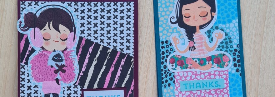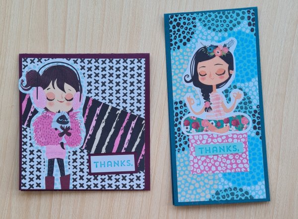 I decided to use up some more of the papers and images from the Making Cards kit I used at the start of the month to create a couple of little note cards.