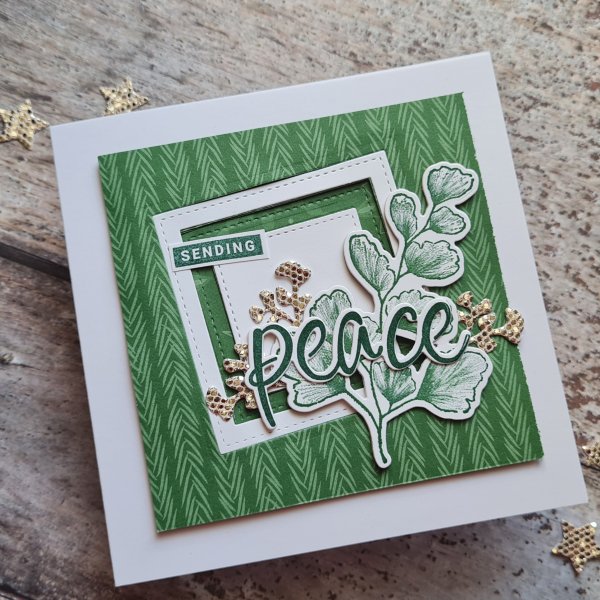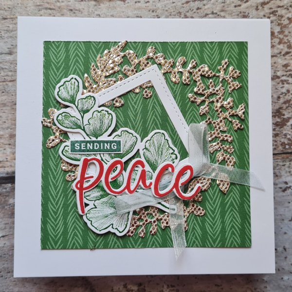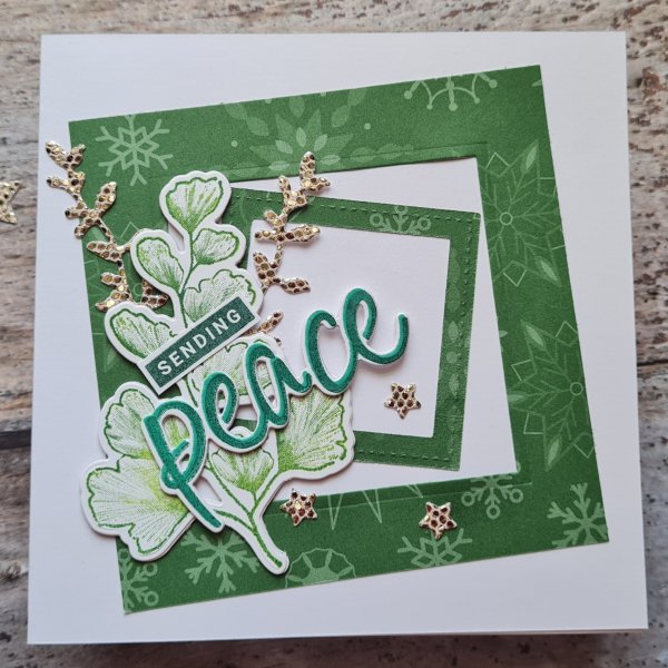 My sending word was from the Peace and Joy set as I felt it just needed something simple with that large leaf and the glimmer paper die cuts.