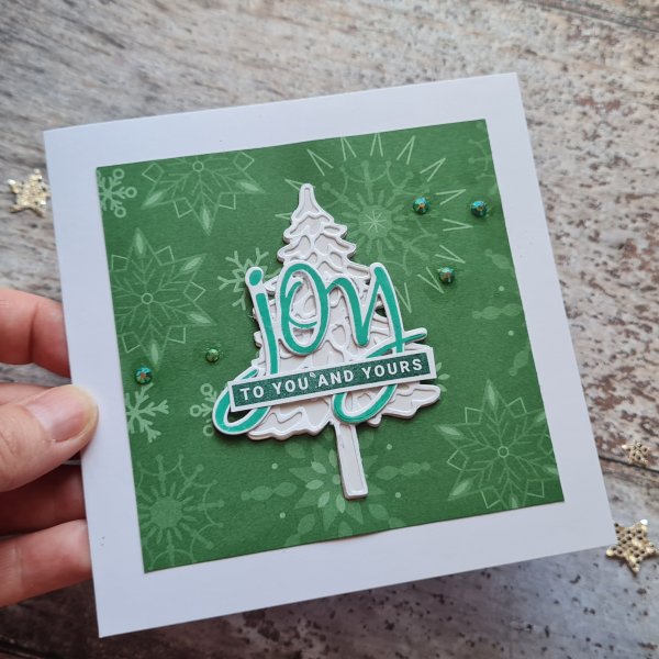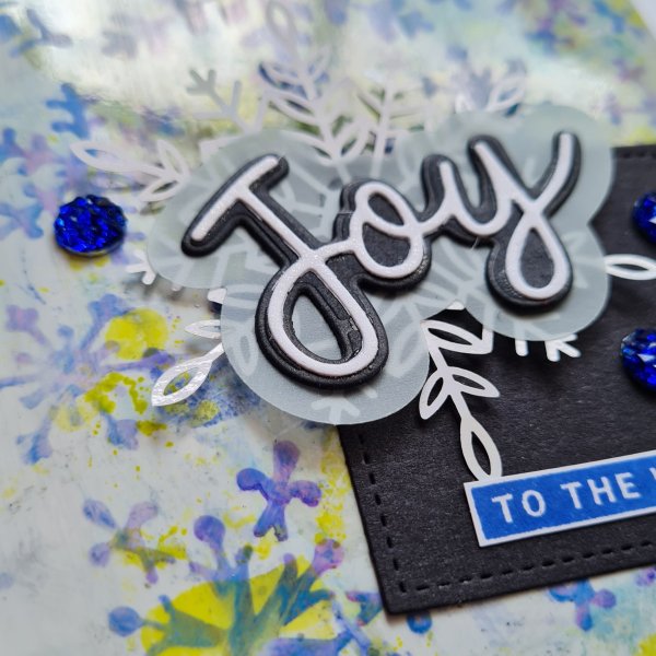 I did die cut the bottom layer of Joy from a scrap of the Soft Succulent vellum I had to hand so that has a slight colour to it but it works with the colours of distress oxides I had used.