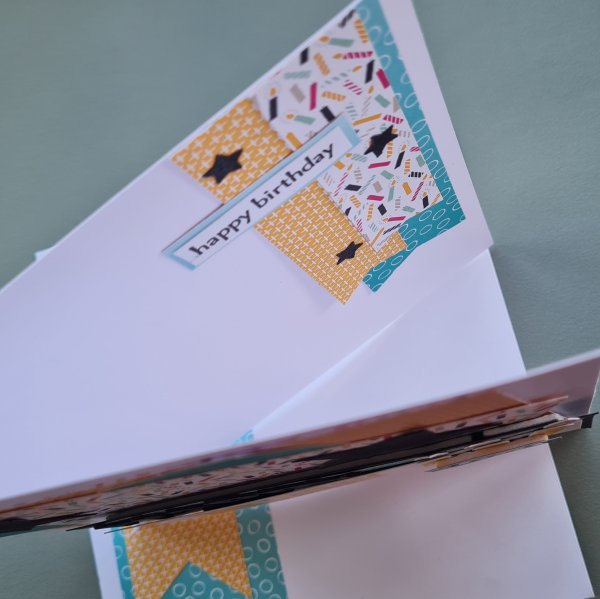 The envelope I used up some of the pieces of paper I had left to layer some banners and that was my card finished!