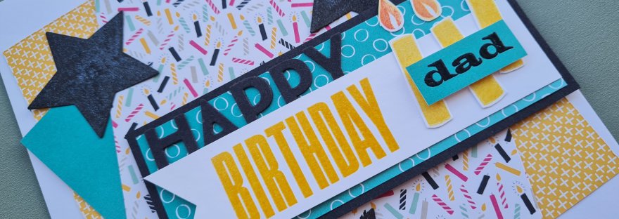 Frustratingly my Dad’s birthday is always very close to Fathers Day and so I always try to make a completely different style of card for his birthday than I made for Fathers Day. Fathers day this year was all wood and brown elements… so for his birthday I went bright and colourful with dramatic black elements instead!