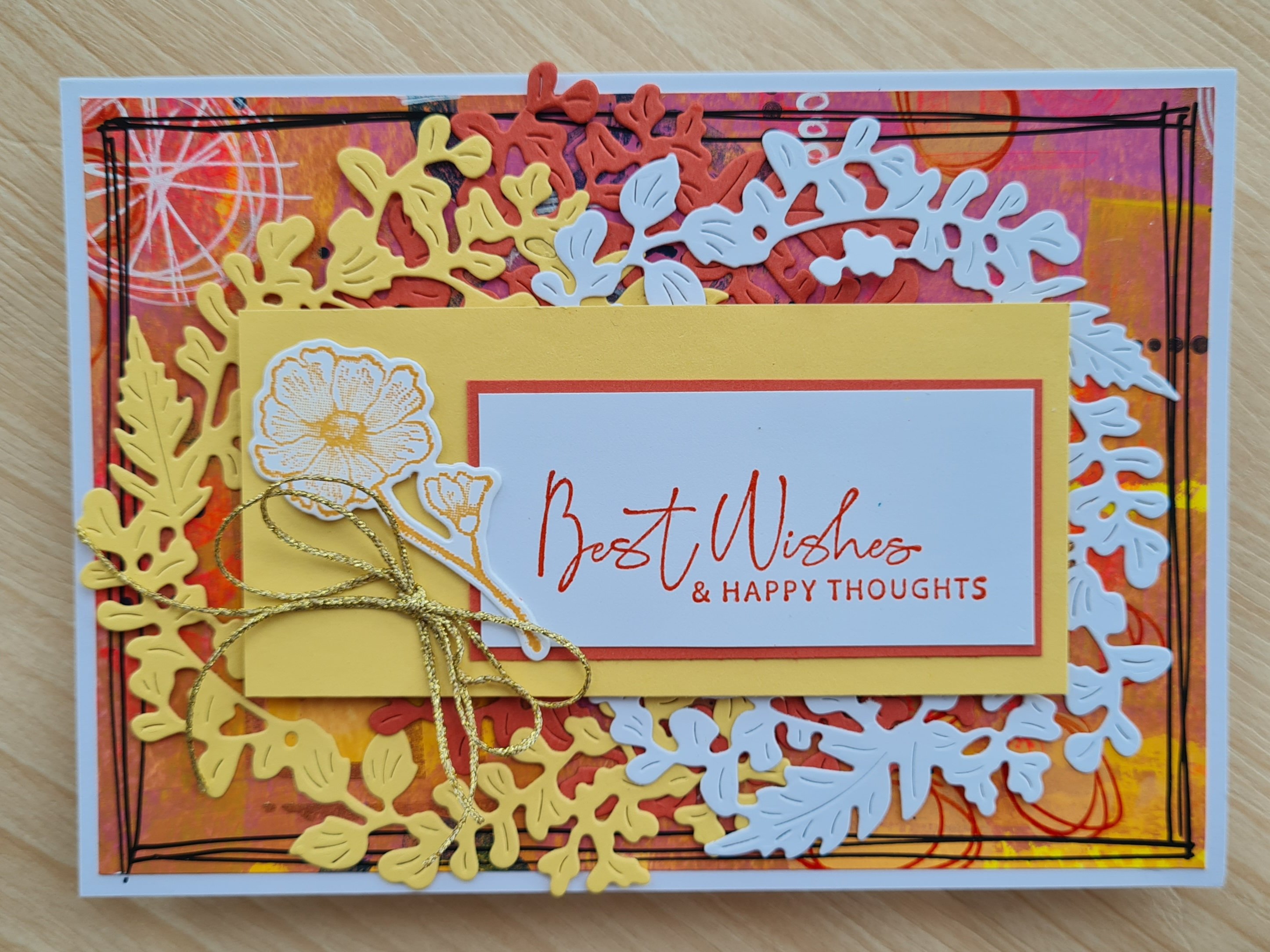 I found this very old dsp lurking in my box of papers and I am trying really hard to use up old stash when I find it… so the paper with candles and the yellow is from the same sheet of 12×12 (the joys of double sided dsp) but I had no other papers from whatever set it was from so decided to add in pieces of the 6×6 Oh So Ombre I had left in my stash too.