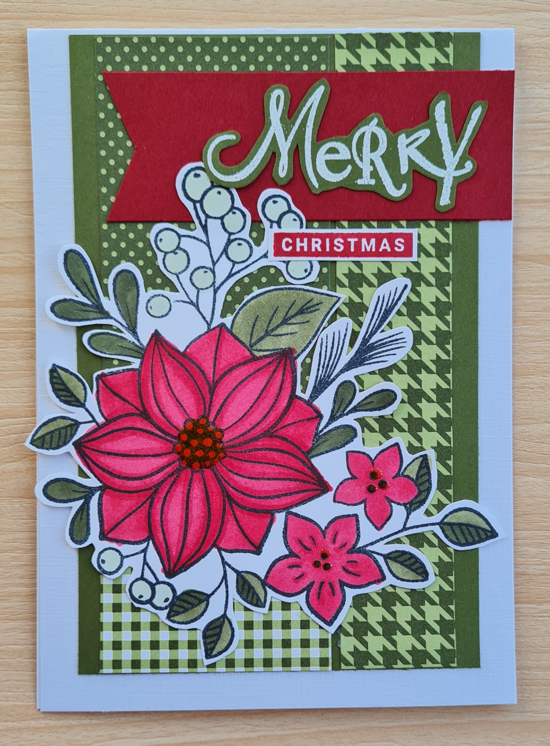 I stuck them onto a piece of dsp that wasn’t on the desk … then stamped the sentiment onto a scrap of white. Decided to use foam to lift the Sweet Sorbet panel up and used a scrap of navy ribbon to sit behind it.