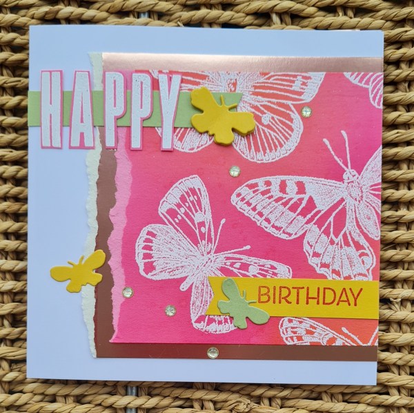 And then had fun chopping papers up and matting and layering. I used 3 sheets of the 6×6 in total and made 8 5×5 cards. I also embossed a couple of the card blanks using my new favourite embossing folder: timeworn type.