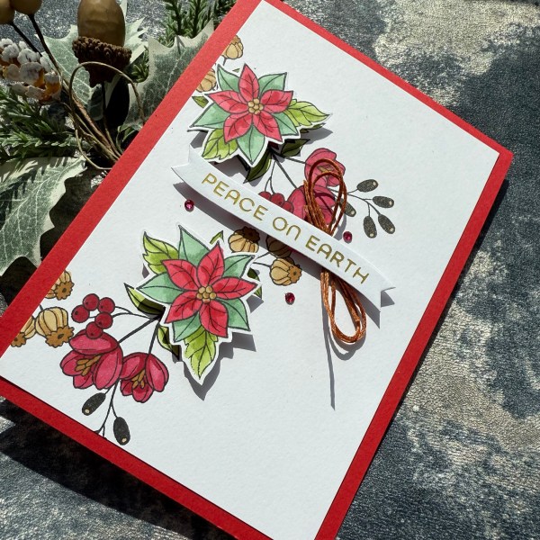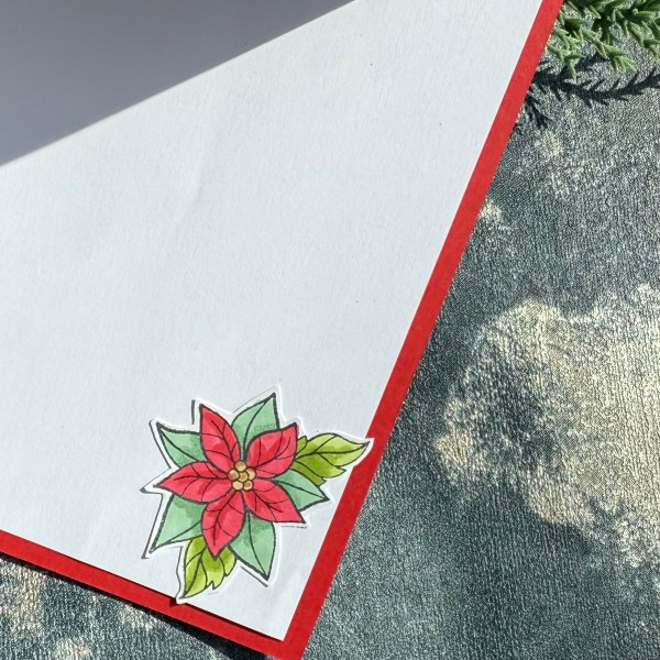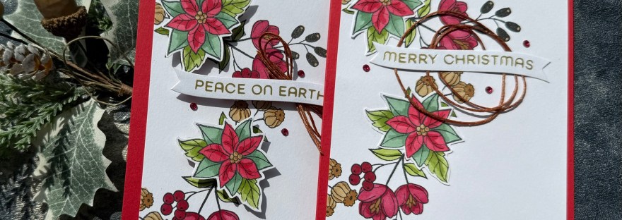 I finished both differently although clearly very similar! This first one I added dimension with both the poinsettia elements and the sentiment raised up on adhesive foam.