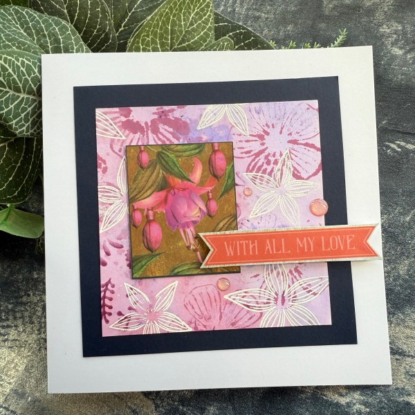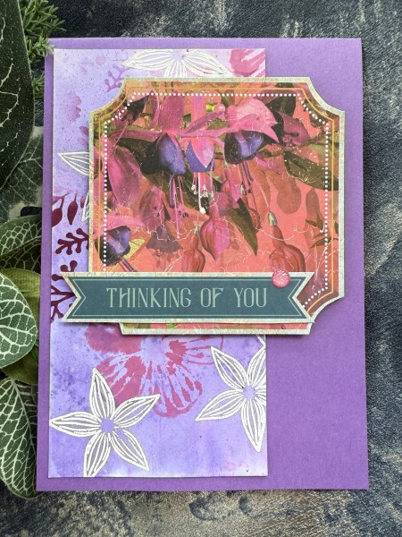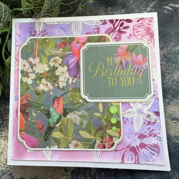 I chose to ink and splatter the background panel which made it special – even though I did have to do it twice as stamped the sentiment too far left originally as it got covered by the paper pieces! Doh!