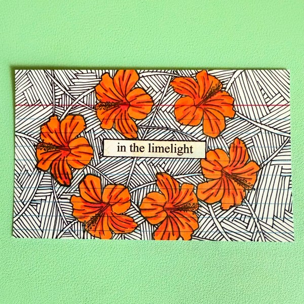 33 – and this time back to flowers with this cute hibiscus flower stamped in a circle and then went to town on the doodled background – by this time I was off work which is probably why I had the time to do this!