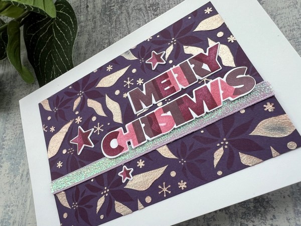 I added the panel of the claret coloured card and then the die cut string of lights as a fun additional element.