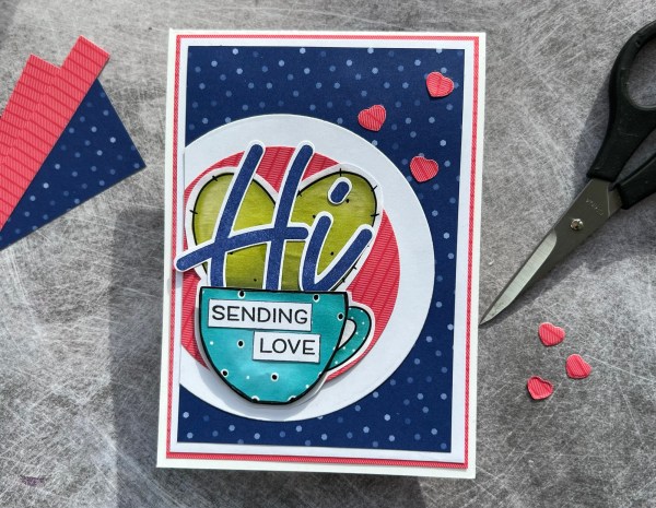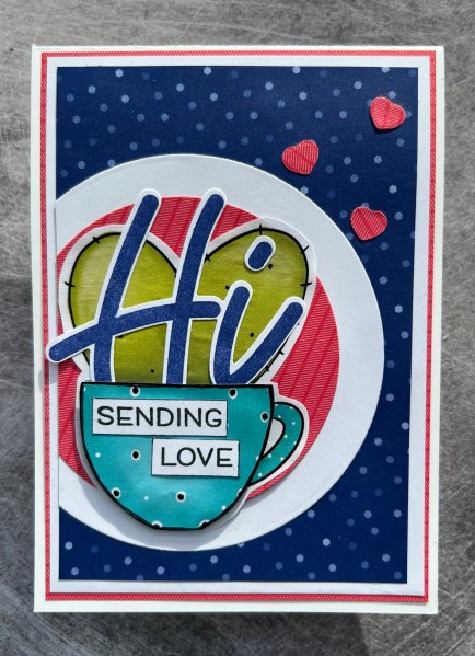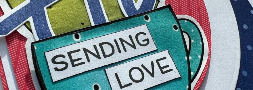 The last card I changed it up and added the panel on the edge of the card at an angle and then just added the bear on the top. I added the sentiment onto a mat so it had a frame and again card Candi to finish off.